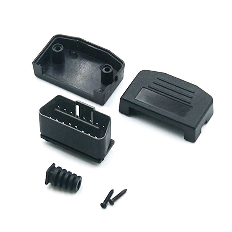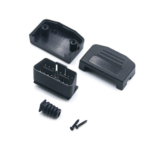 The OBD connector 16 pin with cover is designed by standard J1962 male OBDII connector with 16 pins, it’s easy and smart to be soldered with PCB and assembled both parts by snap-in type.