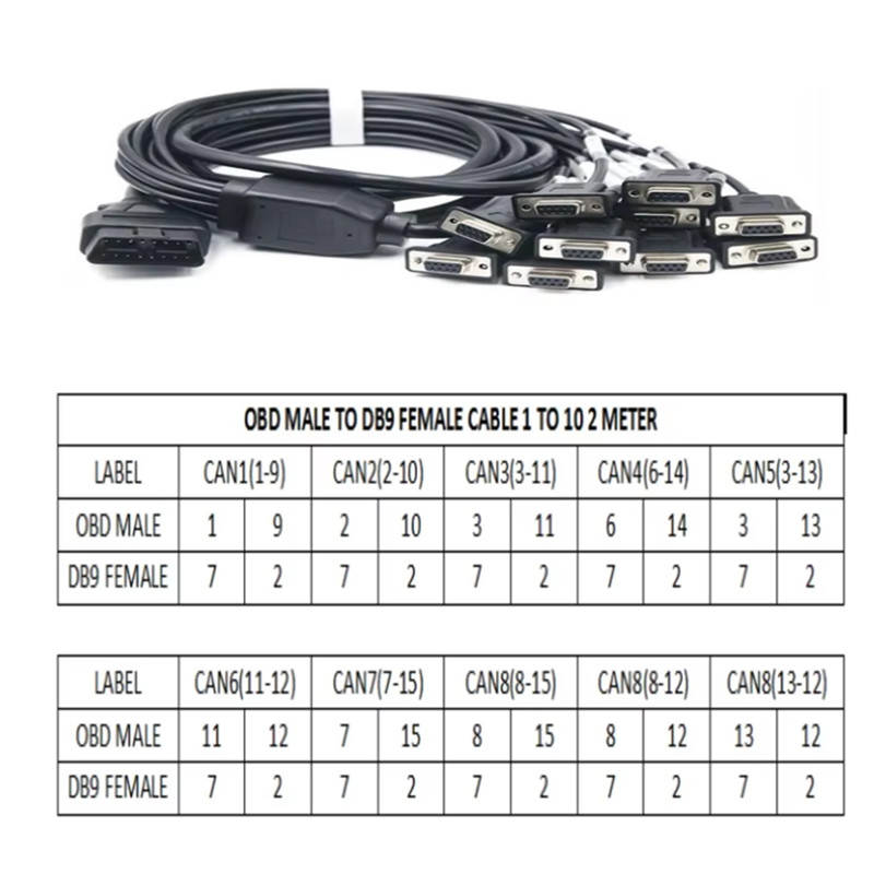 Name: OBD Cable 10 in 1 16 Pin Male to DB9 Pin Female