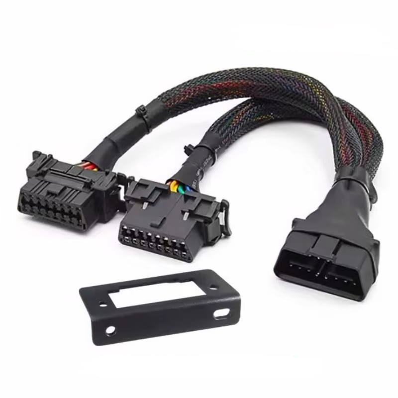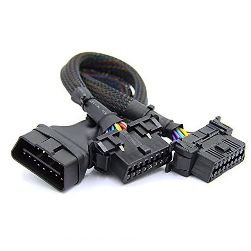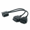 This is a J1962 round OBD cable with 16 pin 16 cores inside the cable, one male to two female as an OBD2 extension diagnostic cable for Kia and Honda.