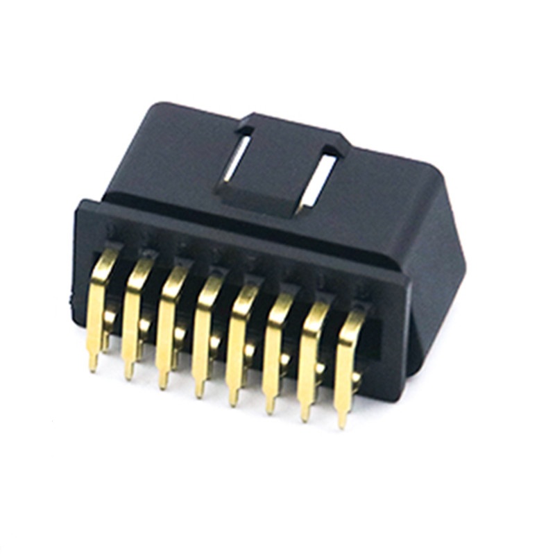 The Right angle OBD connector 16 pin is a special designed J1962 male OBDII connector with 16 pins, suitable for soldering PCB boards on the back.